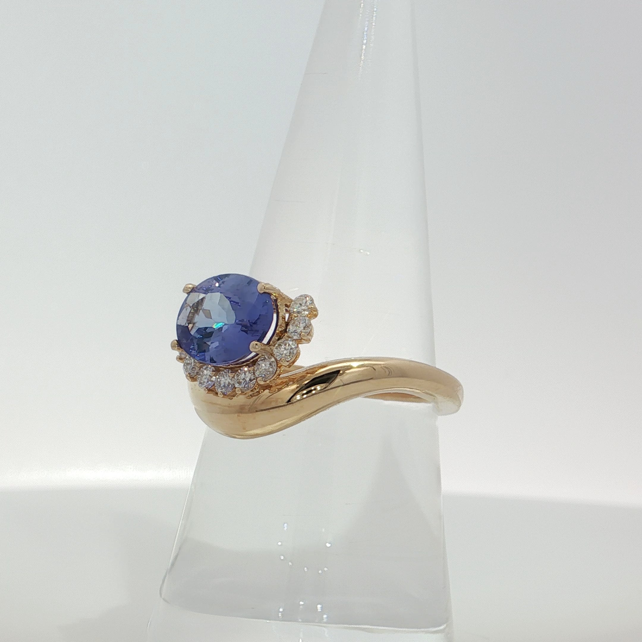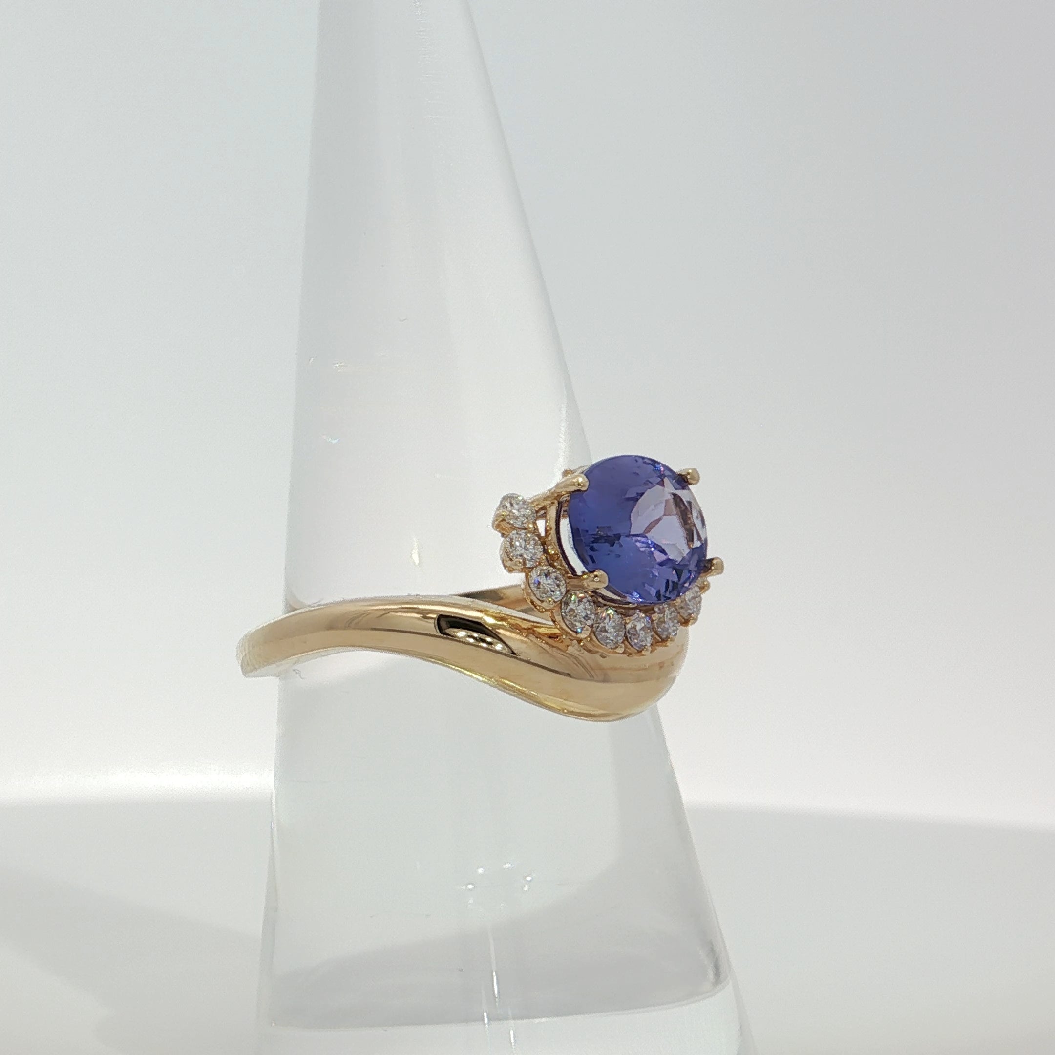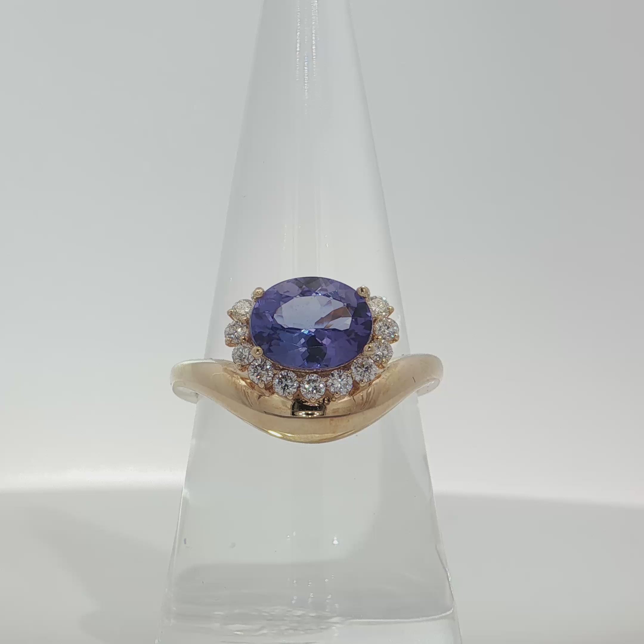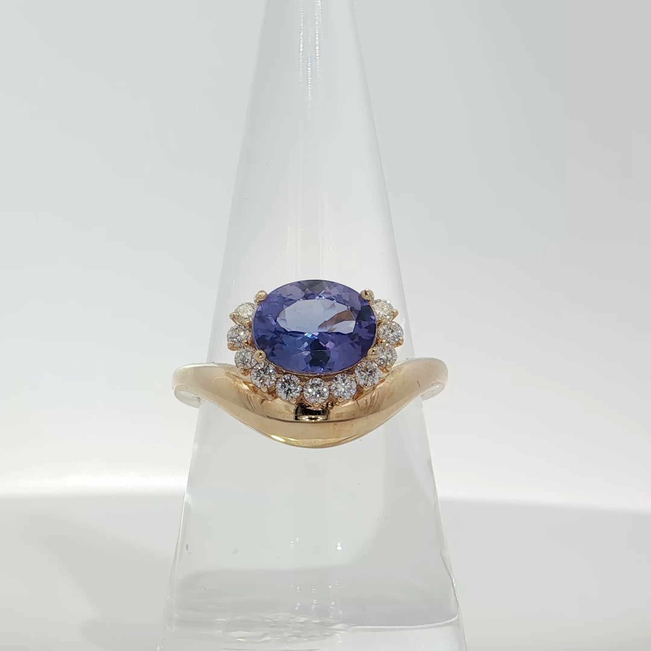 Elevate your style with this exquisite yellow gold multi-stone ring. At its center rests a captivating oval tanzanite, glowing with a mesmerizing bluish-purple hue. Thoughtfully designed to highlight the gemstone’s natural allure, this piece exudes refined elegance and modern sophistication—an unforgettable addition to any jewelry collection.