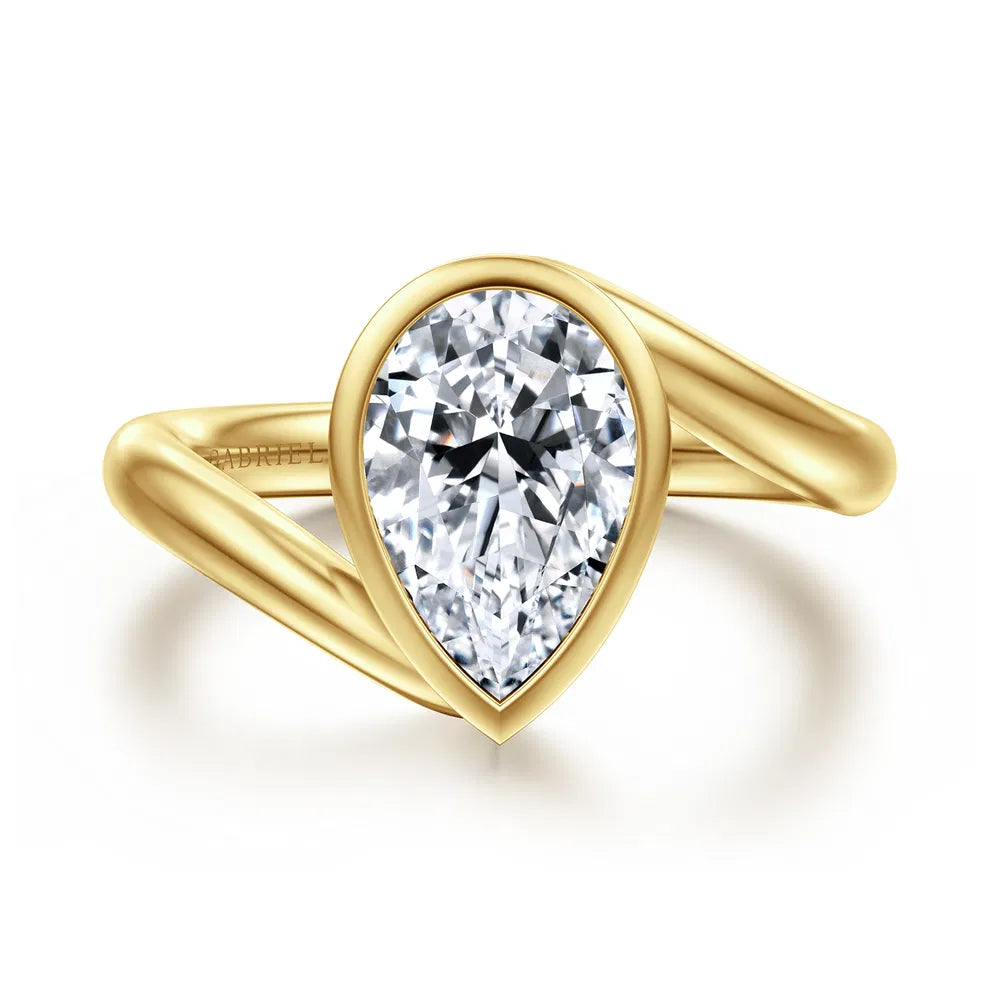 Bypass Bezel Pear Shape Solitaire Diamond Engagement Ring Mounting